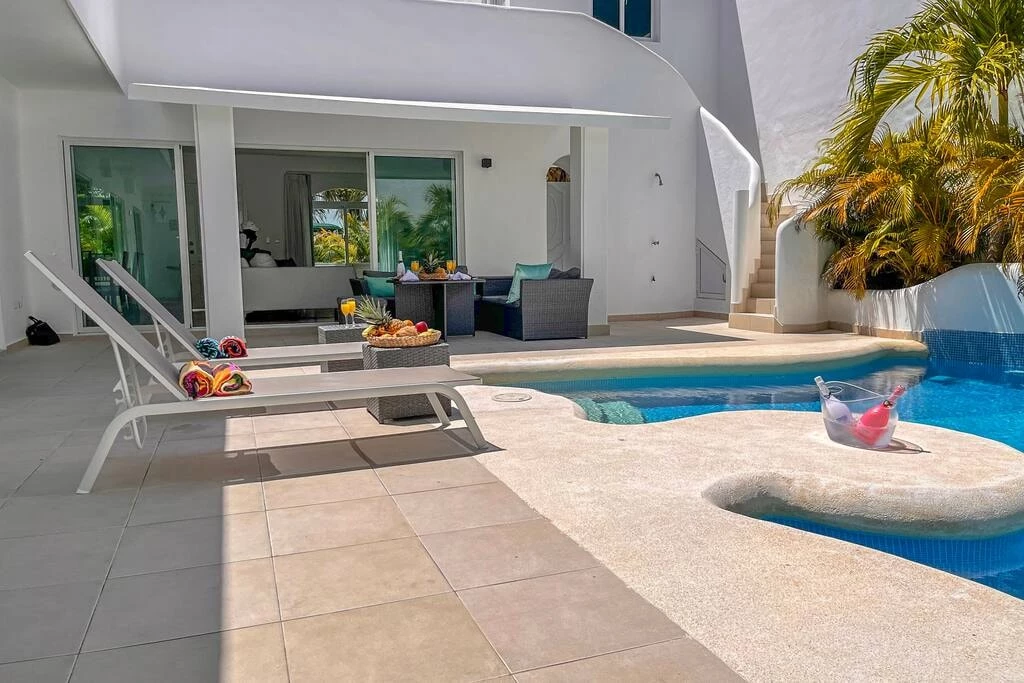 VILLA★FIESTA has it all – a modern Villa just steps away from the stunning private Beach of Playa Palmera, located in our gated Resort. Enjoy a private Pool, a Spa Jacuzzi...
